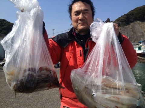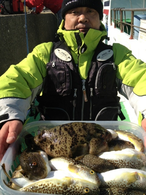 本日は、久しぶりの出船でした。部原沖10mを狙い、フグはポツリポツリと大型混じりで、順調に釣れてくれました。皆さん20匹以上釣れていたので、お土産はバッチリでした(^^) 明日もフグ船で出船ですので、宜しくお願い致します。