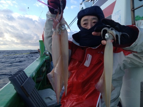 - ヤリイカ船 35~50cm 69~90杯 スルメ船中8杯