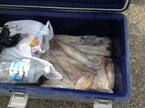 結果は、トップ48杯、2番手36杯、平均30杯以上とお土産バッチリでした。スルメイカが型程度混じる。