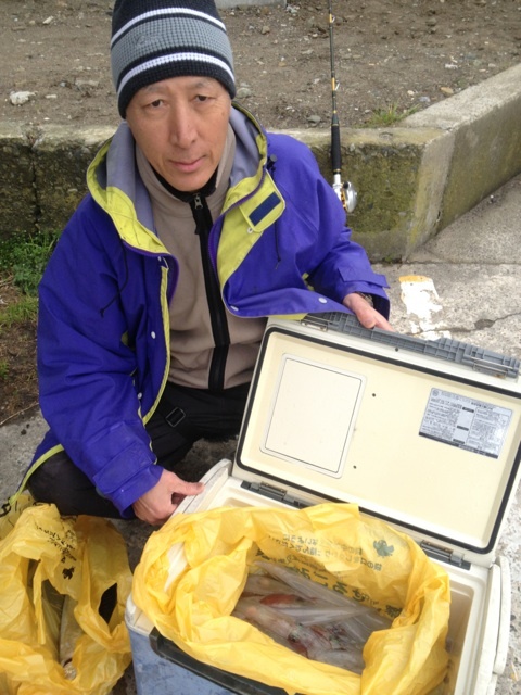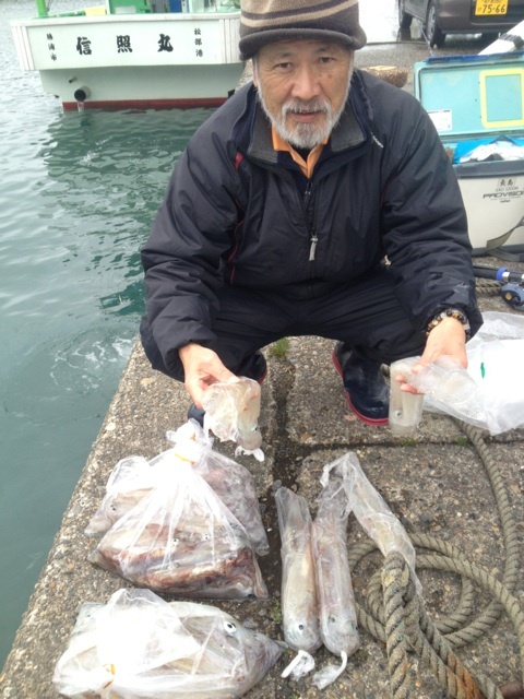北東の風強く、釣りずらいがヤリイカの乗りは良く3点4点5点掛け等あり順調でした。