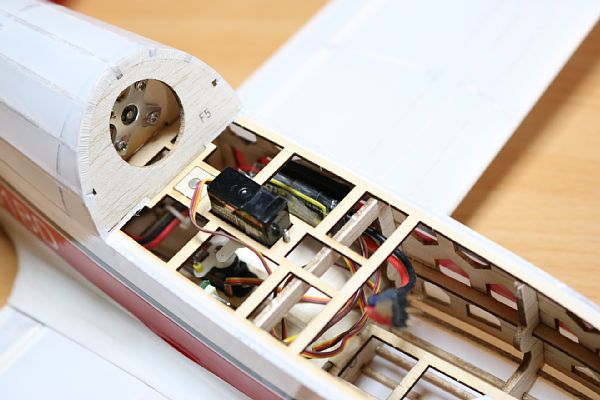 ![]() エレベータサーボはキャノピーの中です。モーターマウントが見えますね。 |