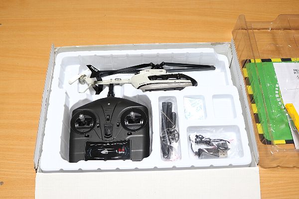 ![]() 中身は無事でした。送信機は認証が取れていないので使えません。バッテリーが見当たらなくて焦りました。 |