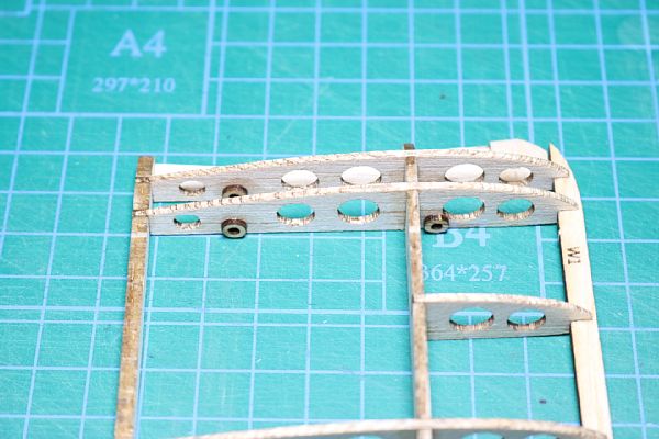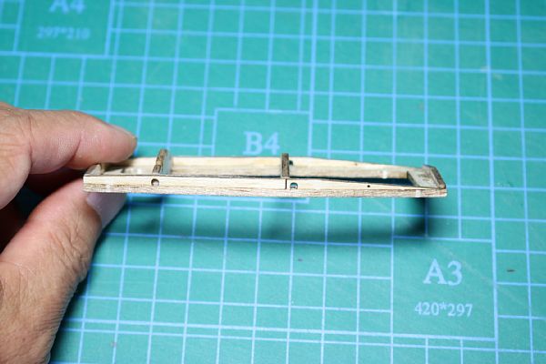 ![]() 胴体側の受けは1.2mmベニヤを写真のように取り付けました。 |