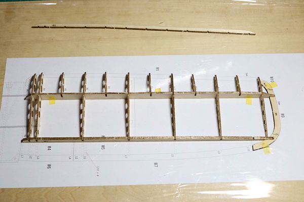 ![]() 原寸図面の上で胴枠を組み立てました。 |