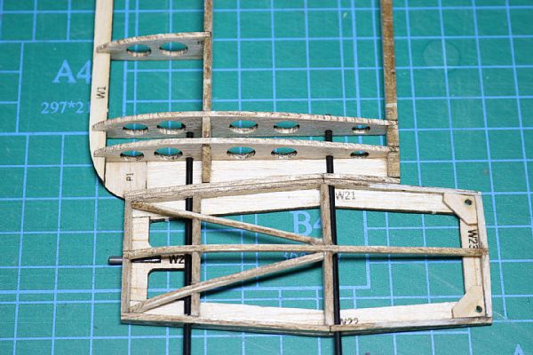 ![]() 尾翼を組み立てました。まず水平尾翼。 |