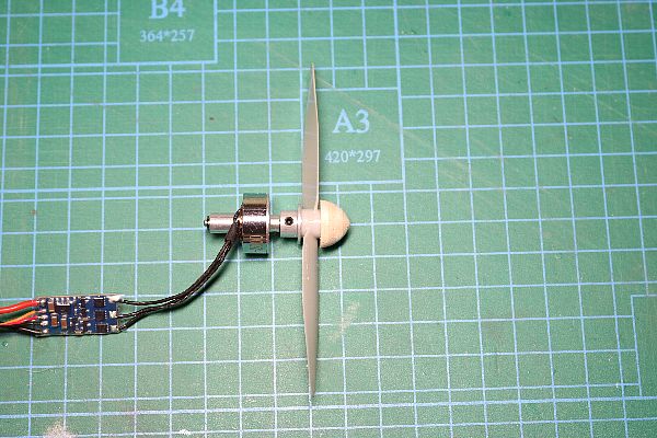 ![]() モーターの組み込みはかなりアクロバットです。アンプを付けたうえでアンプをF1の穴から胴体に差し込んでからモーターマウントをF1にねじ止めします。 |