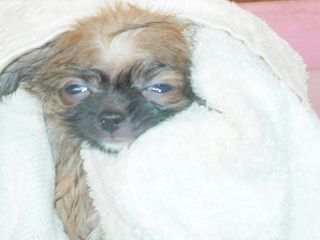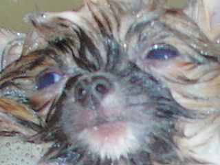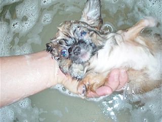 | 75日令、初めてのシャンプー。 子犬にとっては、何をされているのかわかりません。安心感を与えながら洗います。