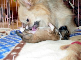 帝王切開で意識のない状態で産んだのに、このよう舐めて排尿させ子犬の面倒をみます。 ミルも初産で、誰に教わったわけでもないのに、本能ってすごいです。